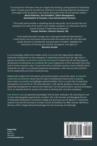 FINALIST: Business Book Awards 2018 - HR and Management Category In an increasingly volatile and complex world, it is crucial that organizations optimize leadership development so that employees in leadership positions have the right skills to operate successfully. Accelerated Leadership Development shows how HR and Learning and Development (L&D) professionals can accelerate the career progression of their top talent from entry level to senior executive roles. It covers the entire acceleration process: how to identify which individuals are right for accelerated leadership development, what roles are best suited for stretch assignments and how to avoid burnout. Packed with insights from HR experts and business leaders around the world , Accelerated Leadership Development shows how this type of development works in practice, what makes it successful and highlights the potential pitfalls to look out for. Debunking the myth that one size of leadership development fits all, this book includes specific guidance on how to tailor leadership development to women and millennials. Full of practical advice, tips and techniques, this is an essential book for anyone looking to develop their very best employees.