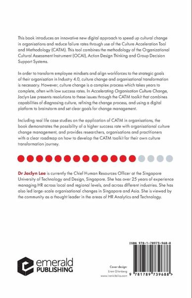 This book introduces an innovative new digital approach to speed up cultural change in organisations and reduce failure rates through use of the Culture Acceleration Tool and Methodology (CATM). Including real life case studies, the book demonstrates the possibility of a higher success rate with organisational culture change management.