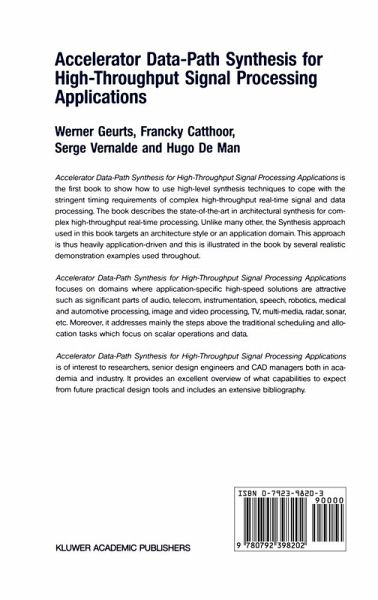 Accelerator Data-Path Synthesis for High-Throughput Signal Processing Applications focuses on domains where application-specific high-speed solutions are attractive such as significant parts of audio, telecom, instrumentation, speech, robotics, medical and automotive processing, image and video processing, TV, multi-media, radar, sonar, etc. Moreover, it addresses mainly the steps above the traditional scheduling and allocation tasks which focus on scalar operations and data.