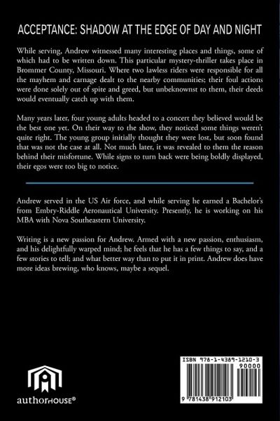 While serving, Andrew witnessed many interesting places and things, some of which had to be written down. This particular mystery-thriller takes place in Brommer County, Missouri. Where two lawless riders were responsible for all the mayhem and carnage dealt to the nearby communities; their foul actions were done solely out of spite and greed, but unbeknownst to them, their deeds would eventually catch up with them. Many years later, four young adults headed to a concert they believed would be the best one yet. On their way to the show, they noticed some things weren't quite right. The young group initially thought they were lost, but soon found that was not the case at all. Not much later, it was revealed to them the reason behind their misfortune. While signs to turn back were being boldly displayed, their egos were too big to notice.