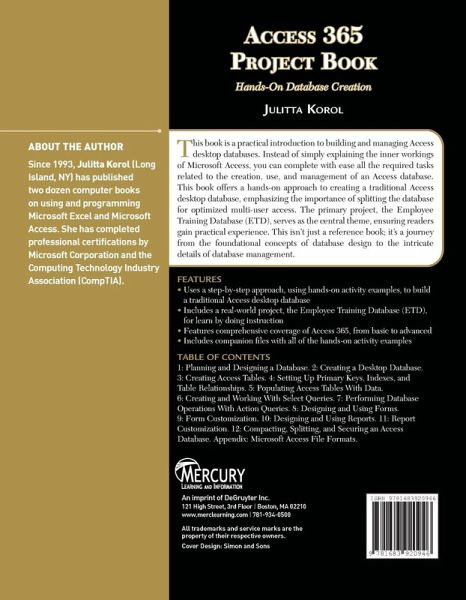 This book is a practical introduction to building and managing Access desktop databases. Instead of simply explaining the inner workings of Microsoft Access, you can complete with ease all the required tasks related to the creation, use, and management of an Access database. This book offers a hands-on approach to creating a traditional Access desktop database, emphasizing the importance of splitting the database for optimized multi-user access. The primary project, the Employee Training Database (ETD), serves as the central theme, ensuring readers gain practical experience. This isn't just a reference book; it's a journey from the foundational concepts of database design to the intricate details of database management.