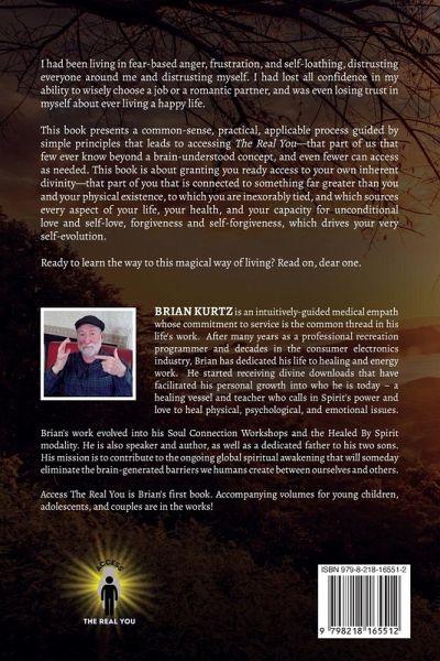 I had been living in fear-based anger, frustration, and self-loathing, distrusting everyone around me and distrusting myself. I had lost all confidence in my ability to wisely choose a job or a romantic partner, and was even losing trust in myself about every living a happy life. This book presents a common-sense, practical, applicable process guided by simple principles that leads to accessing The Real You-that part of us that few ever know beyond a brain-understood concept, and even fewer can access as needed. This book is about granting you ready access to your own inherent divinity-that part of you that is connected to something far greater than you and your physical existence, to which you are inexorably tied, and which sources every aspect of your life, your health, and your capacity for unconditional live and self-love, forgiveness and self-forgiveness, which drives your very self-evolution. Ready to learn the way to this magical way of living? Read on, dear one.
