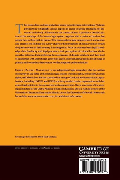 This book offers a critical and in-depth analysis of access to justice from international and Islamic perspectives. Existing Western models have highlighted the mechanisms by which individuals can access justice; however, access to justice incorporates various conceptions of justice and of its users. This book evaluates the historical development of the justice sector in Iran and discusses issues including the performance of the justice sector, judicial independence, efficiency and accessibility, and normative protection, together with an analysis of barriers. It explores the legal empowerment of users, with a specific focus on women, and presents the findings of a survey study on the perceptions of Iranian women. This study is designed to focus on women's basic legal knowledge, their familiarity with legal procedure, perceptions of cultural barriers, issues that influence their preference for mechanisms of formal or alternative dispute solutions, and their level of satisfaction with their chosen courses of action.
