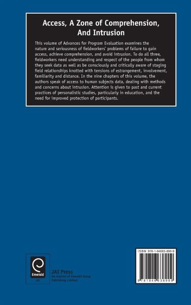 This volume of "Advances for Program Evaluation" examines the nature and seriousness of fieldworkers' problems of failure to gain access, achieve comprehension, and avoid intrusion. To do all three, fieldworkers' need understanding and respect of the people from whom they seek data as well as be consciously and critically aware of staging field relationships knotted with tensions of estrangement, involvement, familiarity and distance. In the nine chapters of this volume, the authors speak of access to human subjects data, dealing with methods and concerns about intrusion. Attention is given to past and current practices of personalistic studies, particularly in education, and the need for improved protection of participants.