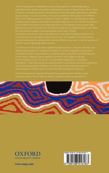Health care systems in developed countries must respond to increasingly diverse populations given greater population movements as a result of globalization. We all share a common humanity yet we each have different health care needs, depending on whether we are young or old, men or women, rich or poor, disabled or able-bodied, from different ethnic and indigenous groups, or citizens or asylum-seekers. Our membership of these societal groups shapes to some extent our health needs and our use of health services. But policy-makers and professionals often seem blind to this diversity. Some groups make special claims upon the state and have different expectations regarding health care. What are the barriers to people receiving equitable health care? Should mainstream services be made more responsive to the needs of different people, or is it necessary to set up alternative health care services? The chapters in this book discuss countries and population groups that illustrate different responses to claimant groups and different ways of delivering health services. For the first time this book brings draws together examples of how to deal with diversity from health systems across the industrialized world. It considers population groups within countries and takes a broad approach, studying inherent population diversity (age, sex), citizen issues (migrants, asylum seekers) and ethnic and indigenous groups (multiculturalism in the UK, Roma in Europe, New Zealand Maori, Australian Aborigines). It identifies barriers to accessing health care services by diverse populations and cultural groups within different countries and considers the advantages and disadvantages of different delivery models for different population groups. This book provides an unparalleled breadth of perspectives from which to draw conclusions about how to meet the needs of societies characterised by diversity.
