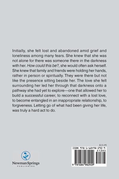 Initially, she felt lost and abandoned amid grief and loneliness among many fears. She knew that she was not alone for there was someone there in the darkness with her. How could this be?, she would often ask herself. She knew that family and friends were holding her hands, rather in person or spiritually. They were there but not like the presence sitting beside her. The love she felt surrounding her led her through that darkness onto a pathway she had yet to explore-one that allowed her to build a successful career, to reconnect with a lost love, to become entangled in an inappropriate relationship, to forgiveness. Letting go of what had been giving her life, was truly a hard act to do.