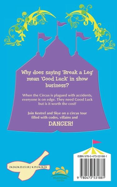 Why does saying 'Break a Leg' mean 'Good Luck' in show business? When the Circus is plagued with accidents, everyone is on edge. They need Good Luck but is it worth the cost? Join Kestrel and Skye on a circus tour filled with codes, villains and danger. Book Five in the Circus Quest series. Follow a traveling circus as they hunt for and solve clues to the Circonvention, a five yearly gathering of the best circus' in the world. Each book contains clues, codes, and a classic slapstick circus gag and features black and white illustrations throughout. Reader Age: 6 yrs and up