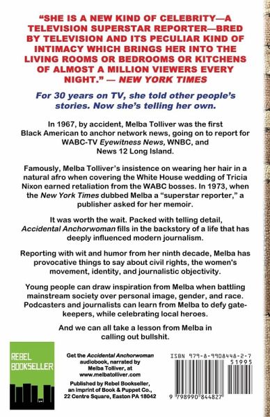 Winner, NABJ Outstanding Book Award 2024 (National Association of Black Journalists) "She is a new kind of celebrity-a television superstar reporter-bred by television and its peculiar kind of intimacy which brings her into the living rooms or bedrooms or kitchens of almost a million viewers every night."-New York Times For 30 years on TV, she told other people's stories. Now she's telling her own. In 1967, by accident, Melba Tolliver was the first Black American to anchor network news, going on to report and anchor for WABC-TV Eyewitness News, WNBC, and News 12 Long Island. Famously, Melba Tolliver's insistence on wearing her hair in a natural afro when covering the White House wedding of Tricia Nixon earned retaliation from the WABC bosses. In 1973, when the New York Times dubbed Melba a "superstar reporter," a publisher asked for her memoir. It was worth the wait. Packed with telling detail, Accidental Anchorwoman fills in the backstory of a life that has deeply influenced modern journalism. Reporting with wit and humor from her ninth decade, Melba has provocative things to say about civil rights, the women's movement, identity, and journalistic objectivity. Young people can draw inspiration from Melba when battling mainstream society over personal image, gender, and race. Podcasters and journalists can learn from Melba to defy gatekeepers, while celebrating local heroes. And we can all take a lesson from Melba in calling out bullshit.