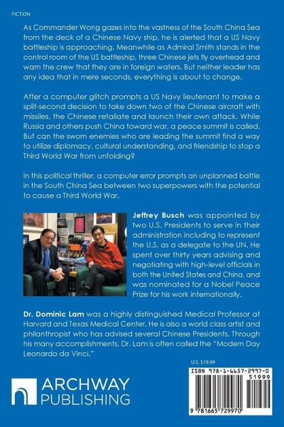 As Commander Wong gazes into the vastness of the South China Sea from the deck of a Chinese Navy ship, he is alerted that a US Navy battleship is approaching. Meanwhile as Admiral Smith stands in the control room of the US battleship, three Chinese jets fly overhead and warn the crew that they are in foreign waters. But neither leader has any idea that in mere seconds, everything is about to change. After a computer glitch prompts a US Navy lieutenant to make a split-second decision to take down two of the Chinese aircraft with missiles, the Chinese retaliate and launch their own attack. While Russia and others push China toward war, a peace summit is called. But can the sworn enemies who are leading the summit find a way to utilize diplomacy, cultural understanding, and friendship to stop a Third World War from unfolding? In this political thriller, a computer error prompts an unplanned battle in the South China Sea between two superpowers with the potential to cause a Third World War.
