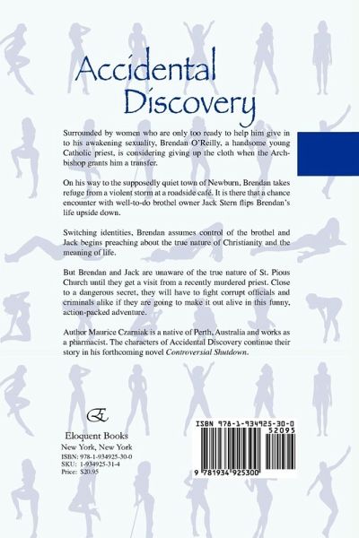 Surrounded by women who are only too ready to help him give in to his awakening sexuality, Brendan O'Reilly, a handsome young Catholic priest, is considering giving up the cloth when the Archbishop grants him a transfer. On his way to the supposedly quiet town of Newburn, Brendan takes refuge from a violent storm at a roadside café. It is there that a chance encounter with well-to-do brothel owner Jack Stern flips Brendan's life upside down. Switching identities, Brendan assumes control of the brothel and Jack begins preaching about the true nature of Christianity and the meaning of life. But Brendan and Jack are unaware of the true nature of St. Pious Church until they get a visit from a recently murdered priest. Close to a dangerous secret, they will have to fight corrupt officials and criminals alike if they are going to make it out alive in this funny, action-packed adventure. Author Maurice Czarniak is a native of Perth, Australia and works as a pharmacist. The characters of Accidental Discovery continue their story in his forthcoming novel Controversial Shutdown.
