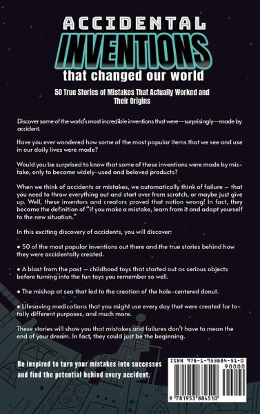 Discover some of the world's most incredible inventions that were-surprisingly-made by accident. Have you ever wondered how some of the most popular items that we see and use in our daily lives were made? Would you be surprised to know that some of these inventions were made by mistake, only to become widely-used and beloved products? When we think of accidents or mistakes, we automatically think of failure - that you need to throw everything out and start over from scratch, or maybe just give up. Well, these inventors and creators proved that notion wrong! In fact, they became the definition of "if you make a mistake, learn from it and adapt yourself to the new situation." It's time to go on an adventure to discover the accidental origin stories behind some of the world's most popular objects. In this exciting discovery of accidents, you will discover: 50 of the most popular inventions out there and the true stories behind how they were accidentally created A blast from the past - childhood toys that started out as serious objects before turning into the fun toys you remember so well The mishap at sea that led to the creation of the hole-centered donut Lifesaving medications that you might use every day that were created for totally different purposes How a failed invention for a strong adhesive eventually gave rise to this popular office supply Objects and appliances around your home that you wouldn't believe were intended for other uses And much more. These stories will show you that mistakes and failures don't have to mean the end of your dream. In fact, they could just be the beginning. Be inspired to turn your mistakes into successes and find the potential behind every accident. When accidents happen, get curious, not furious