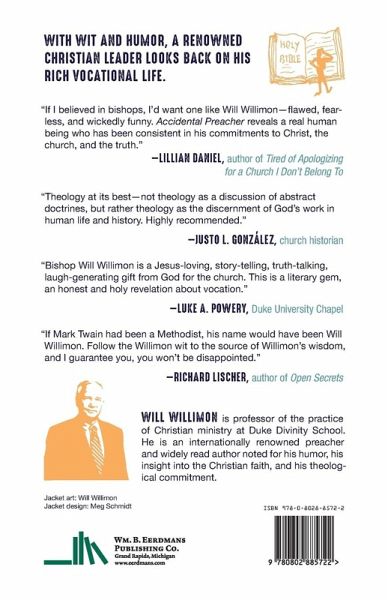 The lively, inspiring memoir of an eminent Christian preacher and leader In this book one of today’s best-known Christian leaders recounts—with his signature wit and humor—memorable moments from his rich and full preaching life. A personal and vocational memoir, Will Willimon’s Accidental Preacher portrays the adventure of a life caught up in the purposes of a God who calls unlikely people to engage in work greater than themselves. Beginning with his childhood in a segregated South and moving through his student years, Willimon gives candid, inspiring, and humorous testimony to his experiences as a seminary professor, rural pastor, globe-trotting preacher, bishop, and popular theologian and writer. Above all, he shows how God has constantly had a call on his life. By turns poignant, hilarious, and thought-provoking—but always irresistibly engaging—Accidental Preacher is sure to join the well-remembered, classic memoir of our time.