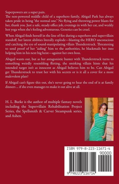 Superpowers are a super pain. The non-powered middle child of a superhero family, Abigail Park has always taken pride in being "the normal one." No flying and throwing power blasts for her, thank you. Just a safe, steady office job, evenings in with her cat, and weekly hot yoga when she's feeling adventurous. Genetics can be cruel. When Abigail finds herself in the line of fire during a superhero and supervillain standoff, her latent abilities literally explode-blasting the HERO unconscious and catching the eye of sound-manipulating villain Thunderstruck. Threatening to send proof of her "aiding" him to the authorities, he blackmails her into helping him in his next big heist-against her own boss. Abigail wants out, but as her antagonistic banter with Thunderstruck turns to something weirdly resembling flirting, the smirking villain hints that his intended target isn't as innocent as Abigail believes him to be. Can Abigail get Thunderstruck to trust her with his secrets or is it all a cover for a more malevolent plan? If Abigail can't figure this out, she's never going to hear the end of it at family dinners ... if she even manages to make it out alive at all.