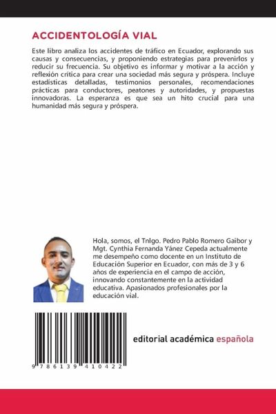 Este libro analiza los accidentes de tráfico en Ecuador, explorando sus causas y consecuencias, y proponiendo estrategias para prevenirlos y reducir su frecuencia. Su objetivo es informar y motivar a la acción y reflexión crítica para crear una sociedad más segura y próspera. Incluye estadísticas detalladas, testimonios personales, recomendaciones prácticas para conductores, peatones y autoridades, y propuestas innovadoras. La esperanza es que sea un hito crucial para una humanidad más segura y próspera.