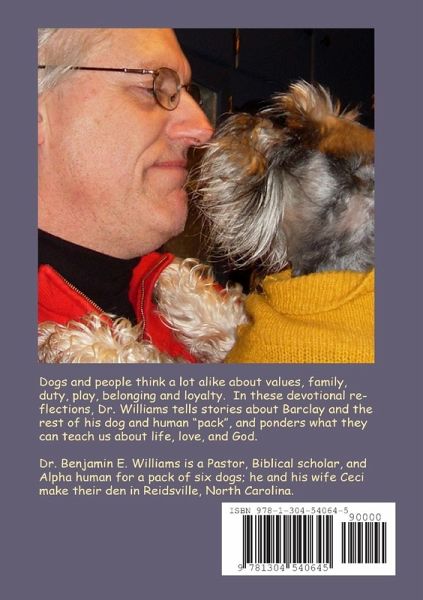 Dogs can teach us a lot about what is important in life, for dogs and people share the same "Pack Center" in our brains, which shapes our values and relationships. In these twenty devotional reflections, Dr. Williams begins with stories and observations about his Schnauzer, Barclay, and the rest of their pack, and ponders how "going to the dogs" can make us better people...and better believers.