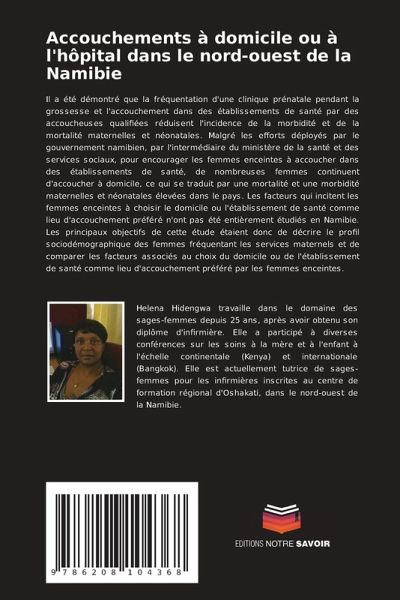 Il a été démontré que la fréquentation d'une clinique prénatale pendant la grossesse et l'accouchement dans des établissements de santé par des accoucheuses qualifiées réduisent l'incidence de la morbidité et de la mortalité maternelles et néonatales. Malgré les efforts déployés par le gouvernement namibien, par l'intermédiaire du ministère de la santé et des services sociaux, pour encourager les femmes enceintes à accoucher dans des établissements de santé, de nombreuses femmes continuent d'accoucher à domicile, ce qui se traduit par une mortalité et une morbidité maternelles et néonatales élevées dans le pays. Les facteurs qui incitent les femmes enceintes à choisir le domicile ou l'établissement de santé comme lieu d'accouchement préféré n'ont pas été entièrement étudiés en Namibie. Les principaux objectifs de cette étude étaient donc de décrire le profil sociodémographique des femmes fréquentant les services maternels et de comparer les facteurs associés au choix du domicile ou de l'établissement de santé comme lieu d'accouchement préféré par les femmes enceintes.