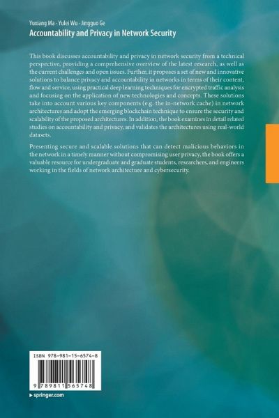 This book discusses accountability and privacy in network security from a technical perspective, providing a comprehensive overview of the latest research, as well as the current challenges and open issues. Further, it proposes a set of new and innovative solutions to balance privacy and accountability in networks in terms of their content, flow and service, using practical deep learning techniques for encrypted traffic analysis and focusing on the application of new technologies and concepts. These solutions take into account various key components (e.g. the in-network cache) in network architectures and adopt the emerging blockchain technique to ensure the security and scalability of the proposed architectures. In addition, the book examines in detail related studies on accountability and privacy, and validates the architectures using real-world datasets.