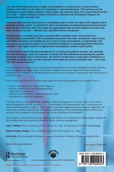 'Jack and Patti Phillips have done it again. Accountability is a critical issue in human resource programs of all kinds, but too often it is overlooked or even misunderstood. This book lays out the framework for accountability systems in clear, simple, and important ways. It is a must read for anyone in our field.' - William Rothwell, Professor of Workforce Education and Development Program, The Pennsylvania State University, USA