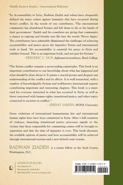 Gross violations of International Humanitarian Law and International Human Rights Laws have been committed in Syria. After a full cessation of violence, launching transitional justice processes will signal to the victims that those responsible for committing these crimes will be brought to reparation and that the time of impunity is over. This book discusses the available options of justice and how accountability will be achieved through international systems and a new hybrid court system.