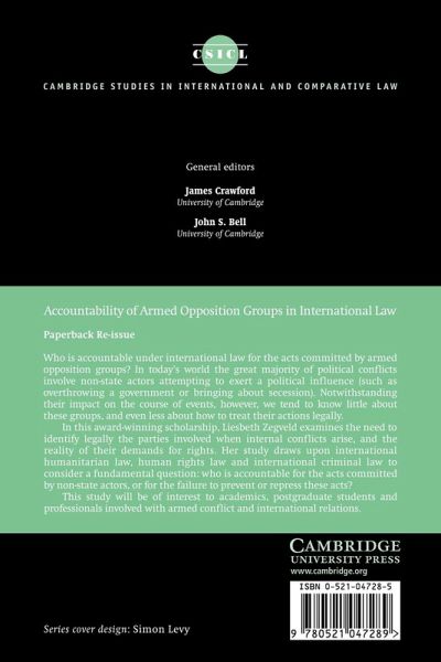LIESBETH ZEGVELD practises as an international and criminal lawyer. In 1998, she received a Fulbright Scholarship to do research at New York University and the Inter-American Commission on Human Rights in Washington, D.C. For her dissertation on armed opposition groups she received the degree 'cum laude' and The Netherlands' Human Rights Award, 2000. She is the co-author, with Frits Kalshocven, of the third edition of Constraints on the waging of war: an introduction to international humanitarian law (ICRC 2001).