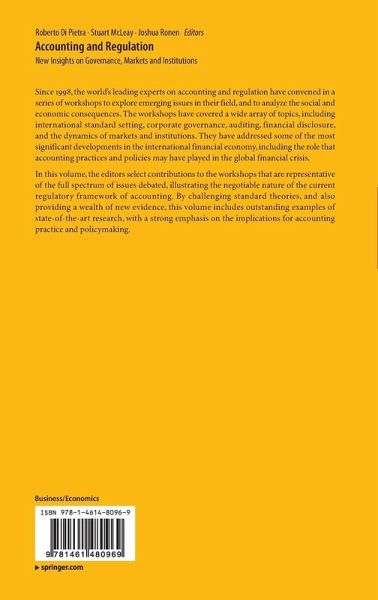 Since 1998, the world's leading experts on accounting and regulation have convened in a series of workshops to explore and analyze emerging issues in the field. They have covered a wide array of topics, including corporate governance, auditing, financial disclosure, international standards boards, and the dynamics of markets and institutions. Most recently, they have focused on the role that accounting practices and policies may have played in the global financial crisis of 2008. In this volume, the editors showcase contributions from the workshops that represent the full spectrum of issues and perspectives relating to accounting and regulation. Each paper incorporates the most current examples and references to reflect the latest insights, with an emphasis on exploring future implications for theory and research, practice, and policymaking.