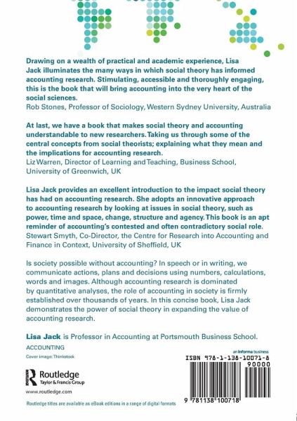 Lisa Jack is Professor of Accounting at Portsmouth Business School, University of Portsmouth, UK. She has written several academic papers using social theory, and co-edited The Routledge Companion to Accounting Communication. She has a special interest in accounting in the agri-food industry.