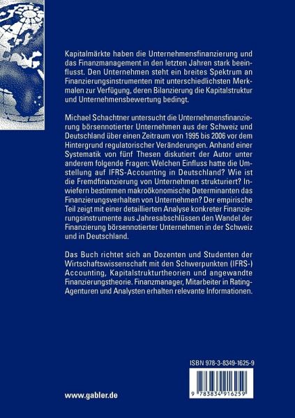 Die Finanzierung von Unternehmen ist der Motor, die Bilanz das Getriebe welches Herkunft und Verwendung der Mittel wiederspiegelt. Dieses Zusammenspiel zwischen Accounting und Unternehmensfinanzierung veranlassten mich zur Verfassung dieser Arbeit. Sie füllt die Lücke bestehender Arbeiten aus diesem Forschungsbereich, die sich - reits mit empirischen Kapitalstrukturuntersuchungen beschäftigen, jedoch eine deta- lierte Betrachtung der Finanzierungsstruktur außer acht lassen. Für die Wahl eines Finanzierungsinstrumentes spielen verschiedene Faktoren eine Rolle - der Kapitalmarkt ist ein Faktor. Steigen die Risikoprämien, weichen Konzerne, die sich über Anleihen finanzierten, auf das Kreditgeschäft aus. Ziel der Arbeit war zudem die Umstellung auf internationale Accounting Standards im Hinblick auf das Finanzierungsverhalten als weiteren Faktor zu untersuchen. Diese Arbeit entstand während meiner Tätigkeit am Competence Center Financial Sourcing (St. Gallen) und bei Peters, Schönberger & Partner (München). Viele R- menbedingungen, von denen ich bei der Verfassung meiner Arbeit profitiert habe, sind nicht selbstverständlich. Es ist mir ein besonderes Anliegen, mich an dieser Stelle bei denjenigen Personen zu bedanken, die mich bei der Realisierung der Dissertation - terstützt haben und Anteil am Gelingen der Dissertation haben. Mein besonderer Dank gilt Prof. Dr. Pascal Gantenbein für die fachliche Betreuung meiner Dissertation. Seine stetige Unterstützung, weiterführenden Anregungen und motivierenden Ratschläge haben mir geholfen, diese Arbeit zu verfassen. Die dabei gewährte Balance von akademischer Freiheit und kritischem Feedback waren wese- lich für die Prägung der Arbeit. In zahlreichen gemeinsamen Diskussionen konnte ich mein Verständnis fürdie Thematik und den Horizont erweitern, hiervon habe ich in fachlicher und persönlicher Hinsicht sehr profitiert.