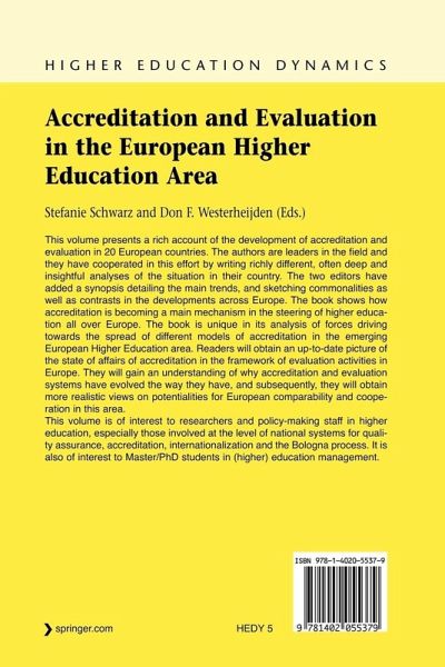 This volume presents a rich account of the development of accreditation and evaluation in 20 European countries. The authors are leaders in the field and they have cooperated in this effort by writing richly different, often deep and insightful analyses of the situation in their country. The two editors have added a synopsis detailing the main trends, and sketching commonalities as well as contrasts in the developments across Europe. The book shows how accreditation is becoming a main mechanism in the steering of higher education all over Europe. The book is unique in its analysis of forces driving towards the spread of different models of accreditation in the emerging European Higher Education area. Readers will obtain an up-to-date picture of the state of affairs of accreditation in the framework of evaluation activities in Europe. They will gain an understanding of why accreditation and evaluation systems have evolved the way they have, and subsequently, they will obtain more realistic views on potentialities for European comparability and cooperation in this area.