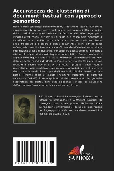 Nell'era della tecnologia dell'informazione, i documenti testuali aumentano spontaneamente su Internet, e-mail, pagine web, relazioni offline e online, riviste, articoli e vengono archiviati in formato elettronico. Ogni giorno vengono creati milioni di nuovi file di testo e, a causa della mancanza di classificazione, si perdono vaste informazioni che sono utili per diverse sfide. Mantenere e accedere a questi documenti è molto difficile senza un'adeguata classificazione e quando c'è una classificazione senza alcuna informazione si parla di clustering. Per superare queste difficoltà, K-means e altri vecchi algoritmi di clustering non sono adatti a fornire quanto ci si aspetta dalle lingue naturali. A causa dell'elevata dimensionalità dei testi, della presenza di indizi di struttura logica all'interno dei testi e di nuove tecniche di segmentazione, si sono sfruttati i progressi degli algoritmi generativi di topic modeling, specificamente progettati per individuare le domande a intervalli di testo per decifrare le distribuzioni tematiche delle parole. Tenendo conto di questa limitazione, l'algoritmo di clustering concettuale COBWEB è stato applicato ai dati pre-elaborati. Per garantire l'accuratezza dei cluster, sono stati selezionati i metodi di misurazione dell'accuratezza f-measure per la valutazione dei cluster.