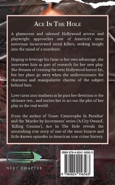 A glamorous and talented Hollywood actress and playwright approaches one of America's most notorious incarcerated serial killers, seeking insight into the mind of a murderer. Hoping to leverage his fame to her own advantage, she interviews him as part of research for her new play. She dreams of creating the next Hollywood horror hit, but her plans go awry when she underestimates the charisma and manipulative charms of the subject behind bars. Love turns into madness as he puts her devotion to the ultimate test... and invites her to act out the plot of her play in the real world. From the author of 'Gone: Catastrophe In Paradise' and the 'Murder by Increments' series ('A City Owned', 'Killing Cousins'), Ace In The Hole reveals the astonishing true story of one of the most bizarre and little-known episodes in American true crime history.