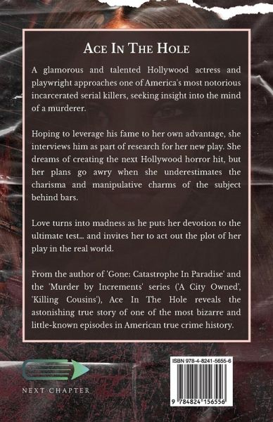 A glamorous and talented Hollywood actress and playwright approaches one of America's most notorious incarcerated serial killers, seeking insight into the mind of a murderer. Hoping to leverage his fame to her own advantage, she interviews him as part of research for her new play. She dreams of creating the next Hollywood horror hit, but her plans go awry when she underestimates the charisma and manipulative charms of the subject behind bars. Love turns into madness as he puts her devotion to the ultimate test... and invites her to act out the plot of her play in the real world. From the author of 'Gone: Catastrophe In Paradise' and the 'Murder by Increments' series ('A City Owned', 'Killing Cousins'), Ace In The Hole reveals the astonishing true story of one of the most bizarre and little-known episodes in American true crime history.