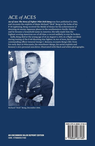 Ace of Aces: The Story of Fighter Pilot Dick Bong was first published in 1960, and recounts the exploits of Major Richard "Dick" Bong at the helm of his P-38 Lightning. Bong received the Medal of Honor for his achievement of downing 40 enemy Japanese planes in the southwestern Pacific theater, and he became a household name in America. His tally made him the highest-scoring American ace of all time, a record unlikely to ever be broken. Sadly, Bong died at the young age of 24 on August 6, 1945, in a flight accident during testing of the P-80 Shooting Star fighter. In Ace of Aces, his former commanding officer General George C. Kenney, recounts Bong's life: from his early days in Wisconsin, his sweetheart Marge, his aerial exploits and Kenney's own personal anecdotes. Illustrated with black and white photographs.