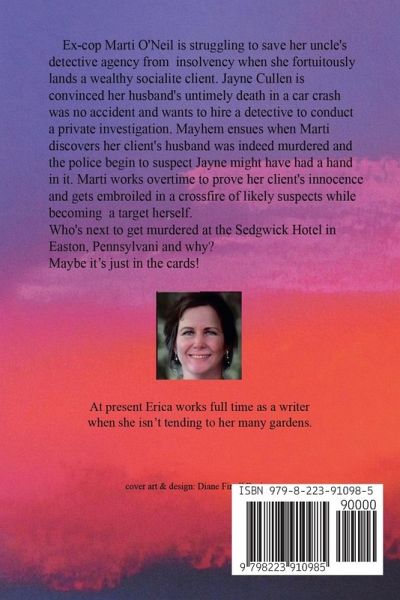 Marti O'Neil is an ex-cop with a mission: save her uncle's detective agency from insolvency. When a wealthy widow hires her to investigate her husband's suspicious death, Marti is thrust into a thrilling and dangerous crossfire of likely suspects in the Philadelphia suburbs. With a killer on the loose, will Marti be able to prove her client's innocence and save herself before it's too late? Mayhem ensues in this suspenseful mystery novel as Marti races to uncover the truth in the shadows of the Sedgewick Hotel in Stroudsburgh, PA. Maybe the answer is just in the cards. If you enjoyed the twisting suspense of books like Full House by Janet Evanovich, Two For the Money by Blair Howard and Indiscretions by Barbara Winkes, you'll love Ace of Cups: Her First Time Out. Order now and start the journey of Marti and Jayne in this the first of the Tarot Mysteries.