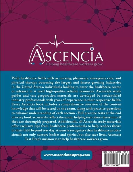 Introducing our ACE Personal Trainer Manual: Study Guide with Practice Test Questions for the American Council on Exercise CPT Exam! Ascencia Test Prep's brand new, unofficial [title] offers you current examples, graphics, and information relevant to your healthcare career. And, unlike other other study guides on the market, you'll benefit from a quick yet total review of everything on the exam! There's more: imagine having your test prep materials on your phone or tablet! Ascencia Test Prep's ACE Personal Trainer Manual comes with FREE practice questions, online flash cards, study "cheat" sheets, and 35 test tips, all available online. These easy to use materials will give you the edge you need to pass your exam the first time. The American Council on Exercise was not involved in the creation or production of this product, is not in any way affiliated with Ascencia Test Prep, and does not sponsor or endorse this product. Ascencia Test Prep's ACE Personal Trainer Manual offers you a full review of the subjects covered on the [name of exam] exam, test tips and strategies, real-world examples, and worked through practice problems. Our book covers:Exercise Science Nutrition Assessment Exercise Technique Program Design Client Relations and Coaching Safety and Risk Management Professional Development and Responsibility ... and also includes 2 FULL practice tests, so that you will be ready on test day. About Ascencia Test Prep With healthcare fields such as nursing, pharmacy, emergency care, and physical therapy becoming the fastest and largest growing industries in the United States, individuals looking to enter the healthcare industry or rise in their field need high quality, reliable resources. Ascencia Test Prep's study guides and test preparation materials are developed by credentialed, industry professionals with years of experience in their respective fields. Every Ascencia book includes a comprehensive overview of the content knowledge that will be tested, along with practice questions for each section to enhance understanding. Full practice tests at the end of every book accurately reflect the exam, helping test takers determine if they are thoroughly prepared. Additionally, all Ascencia study materials offer exclusive tips from healthcare professionals to help readers thrive in their field beyond test day. Ascencia recognizes that healthcare professionals nurture bodies and spirits, and save lives. Ascencia Test Prep's mission is to help healthcare workers grow.