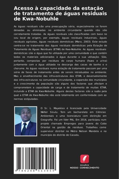 As águas residuais são uma preocupação séria, especialmente se forem deixadas ou eliminadas no ambiente circundante quando não são corretamente tratadas. As águas residuais são classificadas com base no seu local de origem, por exemplo, águas residuais industriais, águas residuais agrícolas, águas residuais domésticas (Mara, 2003). Este estudo centra-se no tratamento das águas residuais domésticas pela Estação de Tratamento de Águas Residuais (ETAR) de Kwa-Nobuhle. As águas residuais domésticas são a água que foi utilizada por uma comunidade e que contém todos os materiais adicionados à água durante a sua utilização. São, portanto, compostas por resíduos do corpo humano (fezes e urina) juntamente com a água utilizada na descarga das casas de banho e o chorume. As águas residuais numa estação de tratamento passam por uma série de fases de tratamento antes de serem introduzidas no ambiente. Mas o envelhecimento das infra-estruturas das ETAR, o desenvolvimento das infra-estruturas na comunidade circundante, a expansão dos municípios e o crescimento da população são alguns dos factores que afectam e comprometem a capacidade de carga e de tratamento de muitas ETAR, incluindo a ETAR de Kwa-Nobuhle. Alguns destes factores são a razão pela qual a ETAR de Kwa-Nobuhle não está totalmente em conformidade com as normas estipuladas.
