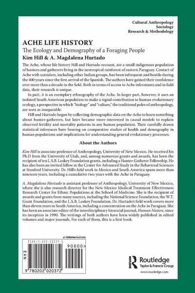The Ache, whose life history the authors recounts, are a small indigenous population of hunters and gatherers living in the neotropical rainforest of eastern Paraguay. This is part exemplary ethnography of the Ache and in larger part uses this population to make a signal contribution to human evolutionary ecology.