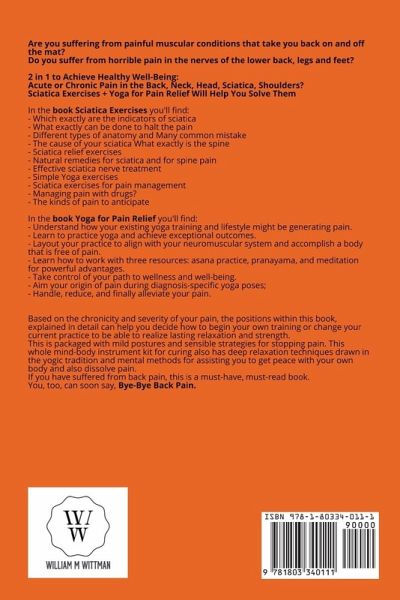 Are you suffering from painful muscular conditions that take you back on and off the mat? Do you suffer from horrible pain in the nerves of the lower back, legs and feet? 2 in 1 to Achieve Healthy Well-Being: Acute or Chronic Pain in the Back, Neck, Head, Sciatica, Shoulders? Sciatica Exercises + Yoga for Pain Relief Will Help You Solve Them In the book Sciatica Exercises you'll find:Which exactly are the indicators of sciatica What exactly can be done to halt the pain Different types of anatomy and Many common mistake The cause of your sciatica What exactly is the spine Sciatica relief exercises Natural remedies for sciatica and for spine pain Effective sciatica nerve treatment Simple Yoga exercises Sciatica exercises for pain management Managing pain with drugs? The kinds of pain to anticipate In the book Yoga for Pain Relief you'll find:Understand how your existing yoga training and lifestyle might be generating pain. Learn to practice yoga and achieve exceptional outcomes. Layout your practice to align with your neuromuscular system and accomplish a body that is free of pain. Learn how to work with three resources: asana practice, pranayama, and meditation for powerful advantages. Take control of your path to wellness and well-being. Aim your origin of pain during diagnosis-specific yoga poses; Handle, reduce, and finally alleviate your pain. Based on the chronicity and severity of your pain, the positions within this book, explained in detail can help you decide how to begin your own training or change your current practice to be able to realize lasting relaxation and strength. This is packaged with mild postures and sensible strategies for stopping pain. This whole mind-body instrument kit for curing also has deep relaxation techniques drawn in the yogic tradition and mental methods for assisting you to get peace with your own body and also dissolve pain. If you have suffered from back pain, this is a must-have, must-read book. You, too, can soon say, Bye-Bye Back Pain. Since the early practice of yoga releases the grip which chronic pain has within your lifetime, you will Start to feel like yourself again! If this Bundle is what you want, go ahead and Order For The Book!