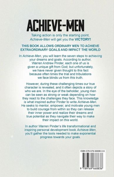 Taking action is only the starting point, Achieve-Men will get you the VICTORY! THIS BOOK ALLOWS ORDINARY MEN TO ACHIEVE EXTRAORDINARY GOALS AND IMPACT THE WORLD If you were given a tool that could ignite your mind to see new possibilities so you could achieve success, would you use it? Can you honestly say that you have positively impacted the world? Do you ever find yourself confused being busy with productivity? In Achieve-Men, you will learn the seven steps to achieving your dreams and goals. According to author, Warren Andrew Pinder, each one of us is given a unique gift from God; but unfortunately, we have never given thought to this fact because oftentimes the trial and tribulations we face blinds us from this truth. However, during these challenging times our true character is revealed, and it often depicts a story of who we are. In the eye of the beholder, young men can be seen as strong or weak depending on how they react to the challenges they face. This knowledge is what inspired author Pinder to write Achieve-Men as he seeks to mentor, empower, and motivate young men to build courage from within so they can release their inner power and realize their dreams and true potential as they navigate their way to make their impact on this world. In author Warren Pinder's life transformational and inspiring personal development book Achieve-Men, you'll gather the tools needed to make exponential progress towards your goals by using the acronym ACHIEVE. In this book you'll discover how to.... Take Daily ................Actions Towards ..................Charting Your Course Regardless of the ......Hurdles You Must .................Intensify Putting in your Best ...Effort To increase the .........Value You Expect to ...........Earn Note from the author: While I created this book to be used as a tool to help young men strive for excellence, it is a powerful resource not only for young men, but women and men of all ages. It has the power to ignite the mind of the reader and propels them to move past any limited belief they may have so they can be empowered to grow, soar, and become leaders as they achieve personal and professional success. If you want to impact the world you've got to be a leader. It's time for your Leadership Upgrade! Get your copy NOW!