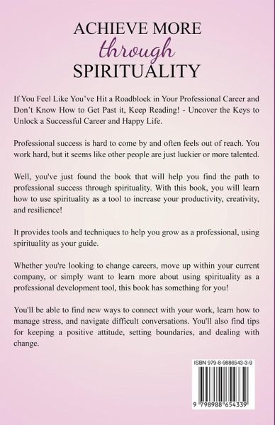 If You Feel Like You've Hit a Roadblock in Your Professional Career and Don't Know How to Get Past it, Keep Reading! - Uncover the Keys to Unlock a Successful Career and Happy Life Professional success is hard to come by and often feels out of reach. You work hard, but it seems like other people are just luckier or more talented. Well, you've just found the book that will help you find the path to professional success through spirituality. With this book, you will learn how to use spirituality as a tool to increase your productivity, creativity, and resilience! It provides tools and techniques to help you grow as a professional, using spirituality as your guide. Whether you're looking to change careers, move up within your current company, or simply want to learn more about using spirituality as a professional development tool, this book has something for you! You'll be able to find new ways to connect with your work, learn how to manage stress, and navigate difficult conversations. You'll also find tips for keeping a positive attitude, setting boundaries, and dealing with change. Discover:How to control your emotions and overcome negativity Simple practices to let go of anxiousness, release anger, and develop stronger confidence! Effective ways to incorporate spirituality in the workplace Tips and tricks to grow professionally and spiritually The valleys of Love, Unity, Knowledge, and more! Meditation techniques to stay grounded, focused, and mentally healthy And so much more! Gain access to powerful techniques and strategies that will help you reach your full potential. You deserve to achieve your greatest professional aspirations. With this book, you will have everything you need to get there.