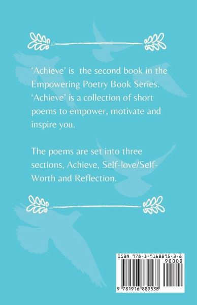 Achieve is a collection of short, simple poems to empower, motivate and inspire you. The poems in this book are set into three sections, Achieve, Self-love / Self-Worth and Reflection. A Poem from the book - 'The mountains don't apologise For how hard they make the climb. But once at the top, They offer a beauty so divine.'