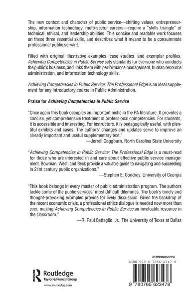 The context and character of public service - shifting values, entrepreneurship, information technology, and multi-sector careers - require a 'skills triangle' of technical, ethical, and leadership abilities. This work focuses on these three essential skills, and describes what it means to be a consummate professional public servant.