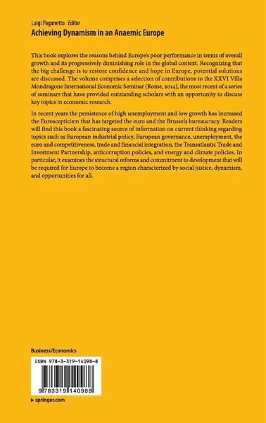 This book explores the reasons behind Europe's poor performance in terms of overall growth and its progressively diminishing role in the global context. Recognizing that the big challenge is to restore confidence and hope in Europe, potential solutions are discussed. The volume comprises a selection of contributions to the XXVI Villa Mondragone International Economic Seminar (Rome, 2014), the most recent of a series of seminars that have provided outstanding scholars with an opportunity to discuss key topics in economic research.