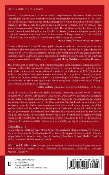 Using the Education for All (EFA) global movement as the setting, this book surveys the complex labyrinths of international education policy making, the design and implementation of system-wide educational reform, and the assessment of learning outcomes in the African context. It addresses the following questions: what does it mean for African states to reform their educational systems to meet the global agenda of Education for All and the Millennium Development Goals? Under what structural conditions have African governments implemented universal primary education programs, and with what outcomes? What are the lessons learned and how do these inform the post-2015 agenda for universal primary education in Africa and other developing countries? This book provides answers to these questions and opens the possibilities for new approaches to Education for All in the context of constrained resources, unstable political climates, and the agency of local communities. It is undeniable that African governments responded to the educational goals espoused in EFA and MDG paradigms through their own "education for all" plans and expended vast resources to realize these objectives. However, there remains a serious gap in knowledge about the design of these plans, the influence of local and international forces in their development, the challenges inherent in executing comprehensive and multifaceted reforms to achieve these goals, and the success of the reform measures as evident in student learning outcomes. This book addresses this knowledge gap in three ways. First, it utilizes empirical data collected over a five-year period from six African countries-Kenya, Mali, Senegal, Nigeria, Tanzania, and Uganda-to illuminate how the global agenda on education has been debated, designed, and implemented across the continent, and with what outcomes. Second, it frames the six nation case studies within the wider logic of international educational policy agenda and the continent-wide search for education quality. Finally, the analysis of universal primary education strategies is undertaken from an interdisciplinary perspective thereby allowing a more comprehensive view of the educational reform.