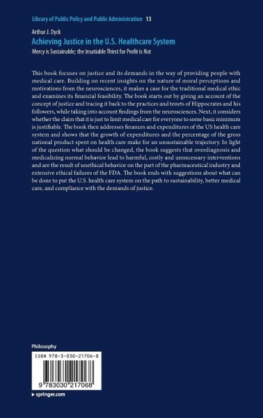 This book focuses on justice and its demands in the way of providing people with medical care. Building on recent insights on the nature of moral perceptions and motivations from the neurosciences, it makes a case for the traditional medical ethic and examines its financial feasibility. The book starts out by giving an account of the concept of justice and tracing it back to the practices and tenets of Hippocrates and his followers, while taking into account findings from the neurosciences. Next, it considers whether the claim that it is just to limit medical care for everyone to some basic minimum is justifiable. The book then addresses finances and expenditures of the US health care system and shows that the growth of expenditures and the percentage of the gross national product spent on health care make for an unsustainable trajectory. In light of the question what should be changed, the book suggests that overdiagnosis and medicalizing normal behavior lead to harmful, costly andunnecessary interventions and are the result of unethical behavior on the part of the pharmaceutical industry and extensive ethical failures of the FDA. The book ends with suggestions about what can be done to put the U.S. health care system on the path to sustainability, better medical care, and compliance with the demands of justice.