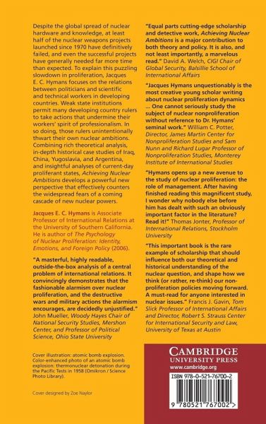 Despite the global spread of nuclear hardware and knowledge, at least half of the nuclear weapons projects launched since 1970 have definitively failed, and even the successful projects have generally needed far more time than expected. To explain this puzzling slowdown in proliferation, Jacques E. C. Hymans focuses on the relations between politicians and scientific and technical workers in developing countries. By undermining the workers' spirit of professionalism, developing country rulers unintentionally thwart their own nuclear ambitions. Combining rich theoretical analysis, in-depth historical case studies of Iraq, China, Yugoslavia and Argentina and insightful analyses of current-day proliferant states, Achieving Nuclear Ambitions develops a powerful new perspective that effectively counters the widespread fears of a coming cascade of new nuclear powers.