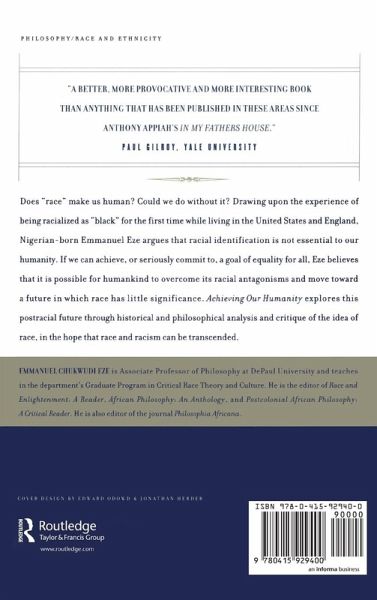 Achieving Our Humanity explores a postracial future through a philosophical analysis of the social, cultural, economic and political experiences of race in the past and what this might mean for our present and, most importantly, our future.