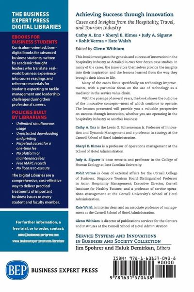 Investigates the genesis and success of innovation in the hospitality industry as detailed in over four dozen case studies. In many of the cases studies, the innovators themselves provide the insights into their innovative inspiration and the lessons learned from the way they brought their innovative ideas to life.