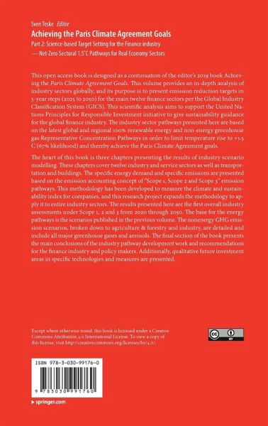 This open access book is designed as a continuation of the editor's 2019 book Achieving the Paris Climate Agreement Goals. This volume provides an in-depth analysis of industry sectors globally, and its purpose is to present emission reduction targets in 5-year steps (2025 to 2050) for the main twelve finance sectors per the Global Industry Classification System. This scientific analysis aims to support the United Nations Principles for Responsible Investment initiative to give sustainability guidance for the global finance industry. The industry sector pathways presented here are based on the latest global and regional 100% renewable energy and non-energy greenhouse gas Representative Concentration Pathways in order to keep climate change significantly under +1.5 C and thereby achieve the Paris Climate Agreement goals.