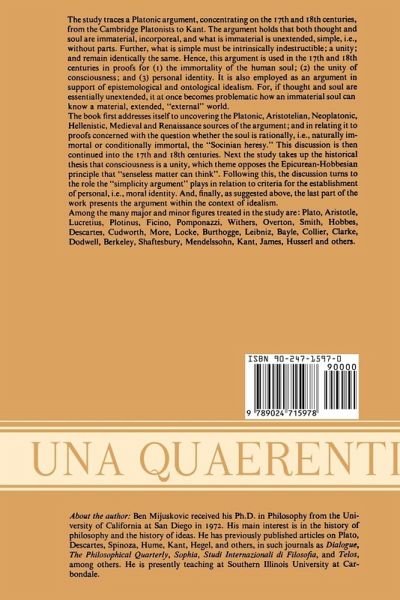 I. Introduction to the Argument and its History Prior to the 17th and 18th Centuries.- II. The Immortality of the Soul in the 17th and 18th Centuries.- III. The Unity of Consciousness in the 17th and 18th Centuries.- IV. Personal Identity in the 17th and 18th Centuries.- V. The Simplicity Argument and its Possible Role in the History of Idealism.