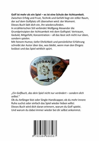 Achtsam golfen - Wenn der Ball fliegt und du bei dir ankommstDas inspirierende Golfbuch für mentale Stärke, Gelassenheit und SpielfreudeDu suchst ein Buch über Golf, das nicht nur Technik, sondern auch den Kopf, das Herz und den Moment einbezieht? Dann ist "Achtsam golfen" genau das Richtige für dich.Autor Wolfgang Alexander verbindet in diesem außergewöhnlichen Golfbuch die Prinzipien der Achtsamkeit mit tiefen Einsichten aus der Golfpraxis. In 23 reflektierenden, humorvollen und persönlichen Kapiteln lernst du, wie Geduld, Konzentration, Mitgefühl, Vertrauen und Loslassen nicht nur dein Spiel, sondern auch dein Erleben auf dem Platz nachhaltig verändern können.Egal ob Golf-Anfänger, fortgeschrittener Freizeitspieler oder erfahrener Pro - dieses Buch bietet dir wertvolle Impulse für:- mehr mentale Ruhe und Fokus beim Golfspielen,- den konstruktiven Umgang mit Fehlern und Drucksituationen,- ein neues, achtsames Verhältnis zu dir selbst und zum Spiel,- und eine tiefere Verbindung zu dem, was Golf wirklich sein kann: ein Weg zu dir selbst."Achtsam golfen" ist kein Trainingshandbuch - sondern ein innerer Begleiter. Es ist ideal für alle, die auf der Suche nach mehr Präsenz, Lebensfreude und innerer Klarheit auf dem Golfplatz sind.